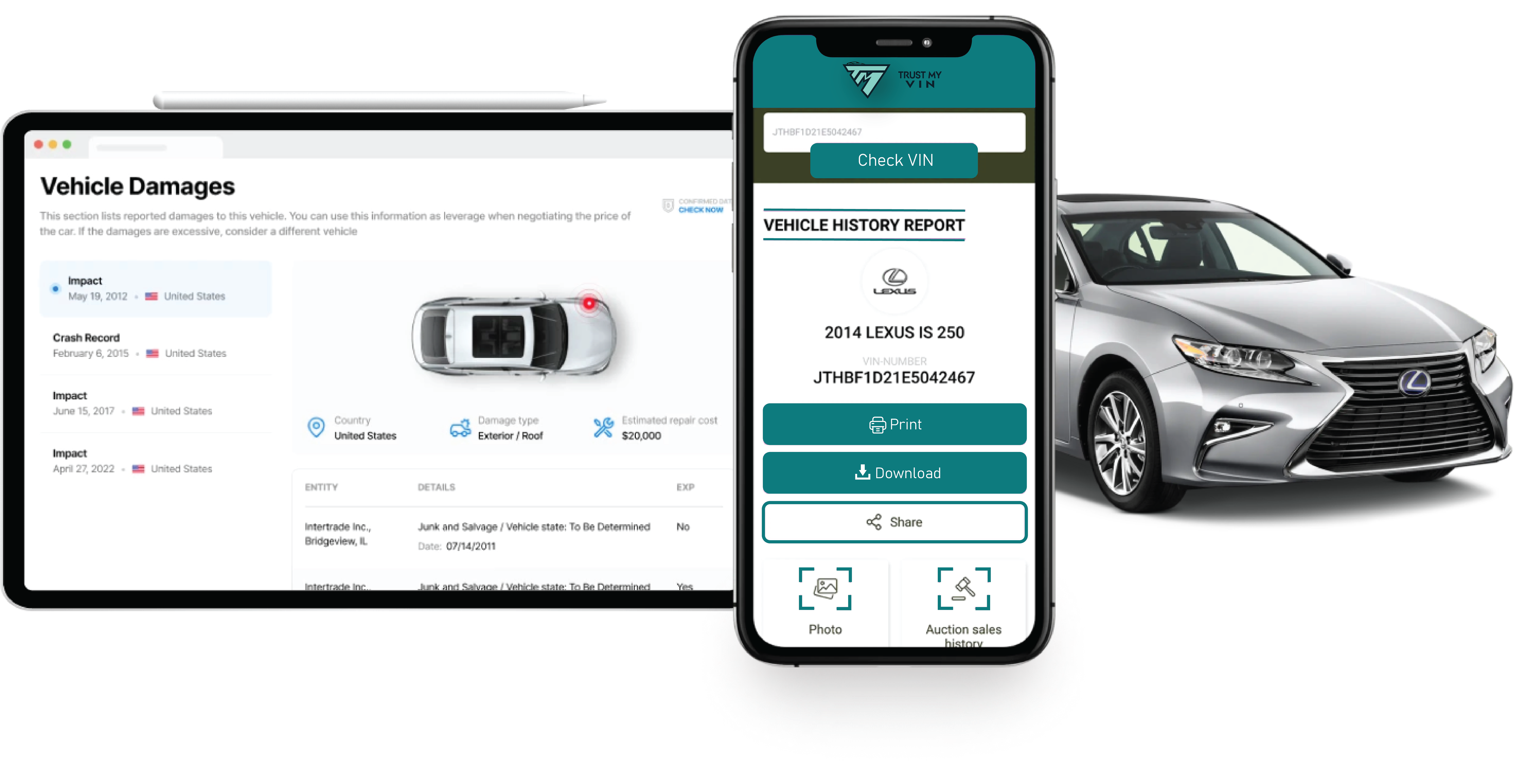 TrustMyVin is an approved NMVTIS data provider. NMVTIS is a national database designed to protect consumers from fraud and unsafe vehicles, to prevent stolen vehicles from being resold, and to provide users with accurate and complete vehicle information.